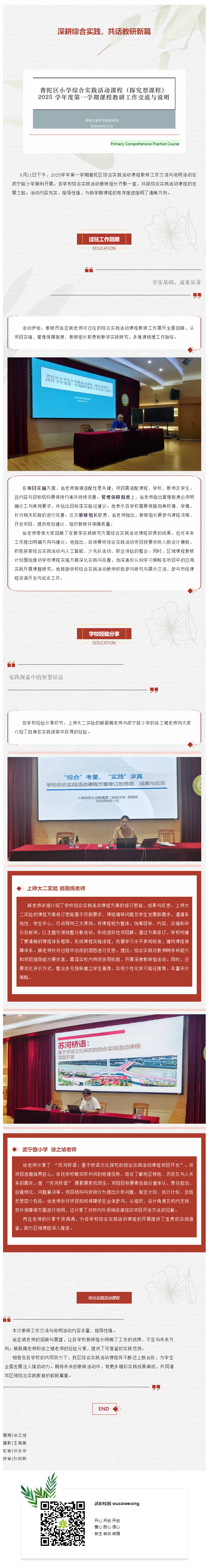 【武彩 聚焦】2025 学年第一学期普陀区综合实践活动课程教研工作交流与说明