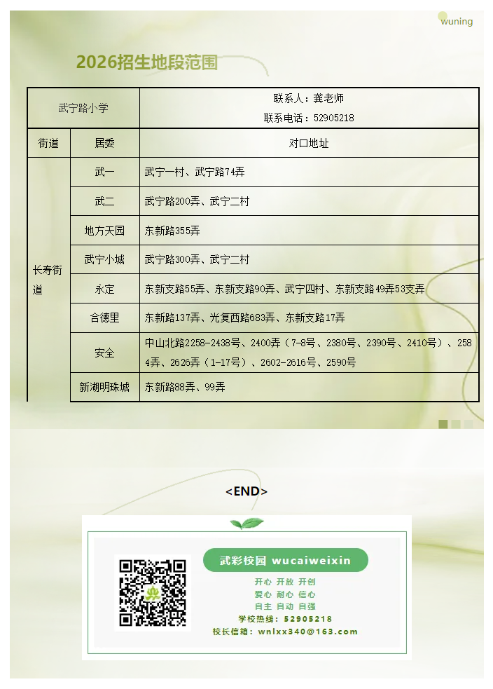 2026年武宁路小学招生地段范围